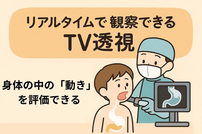 X線TV(テレビ)透視検査はX線を使用して人体の内部をリアルタイムで観察することができます。